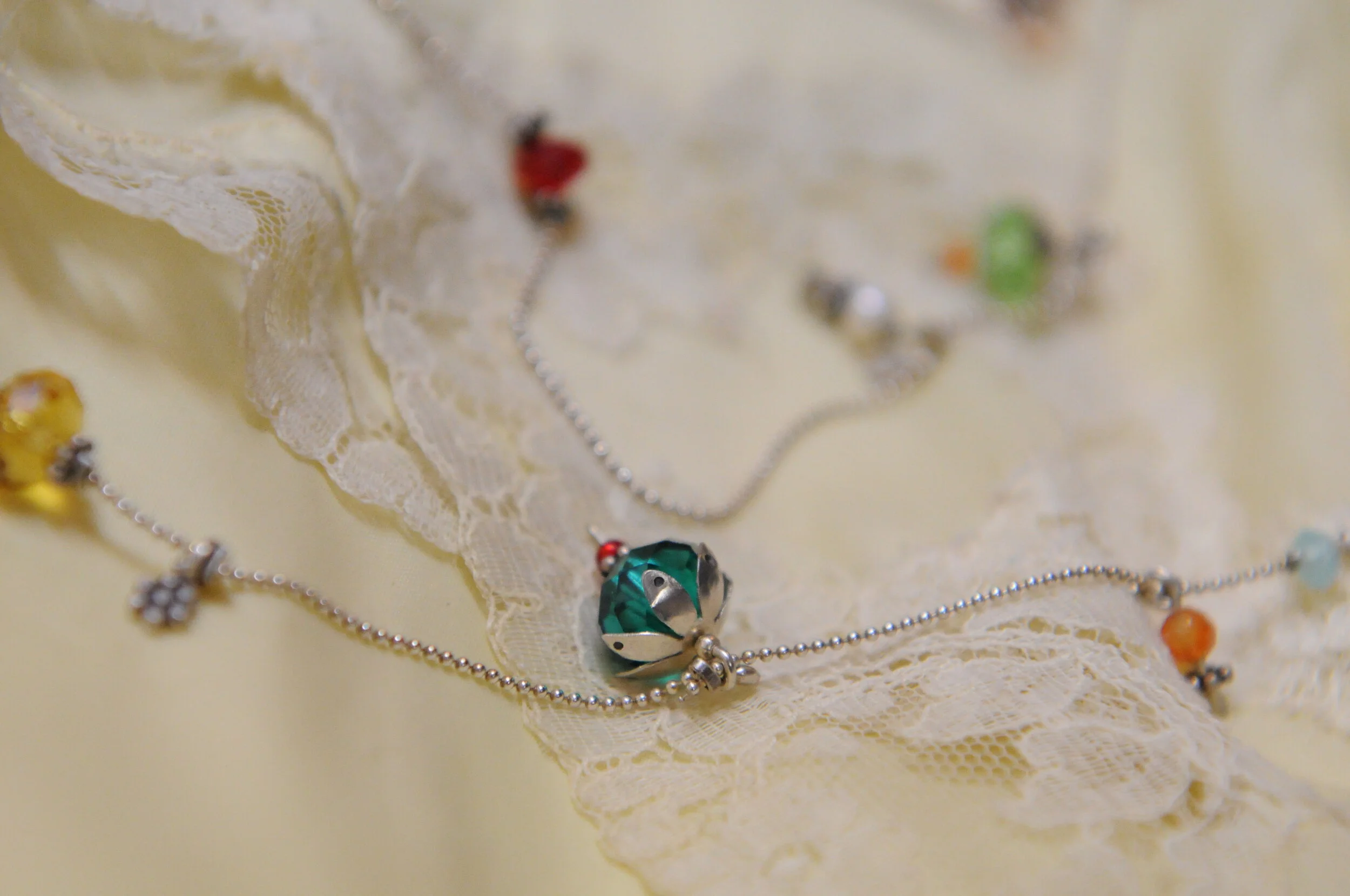 Manuela creates jewellery and other curiosities with precious metals, sometimes incorporating other materials like stones, antique beads, lace, perspex or wood.